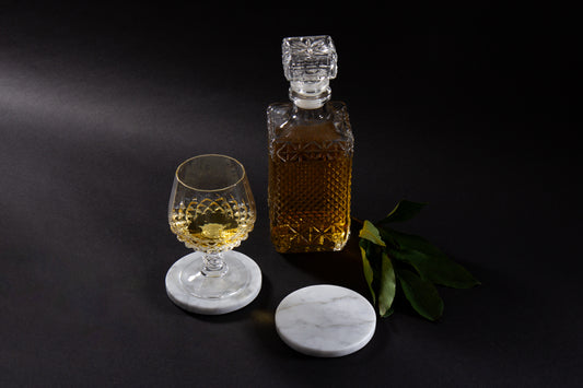 Berlin - runde, mit Kork unterlegte Tischuntersetzer aus weißem Marmor