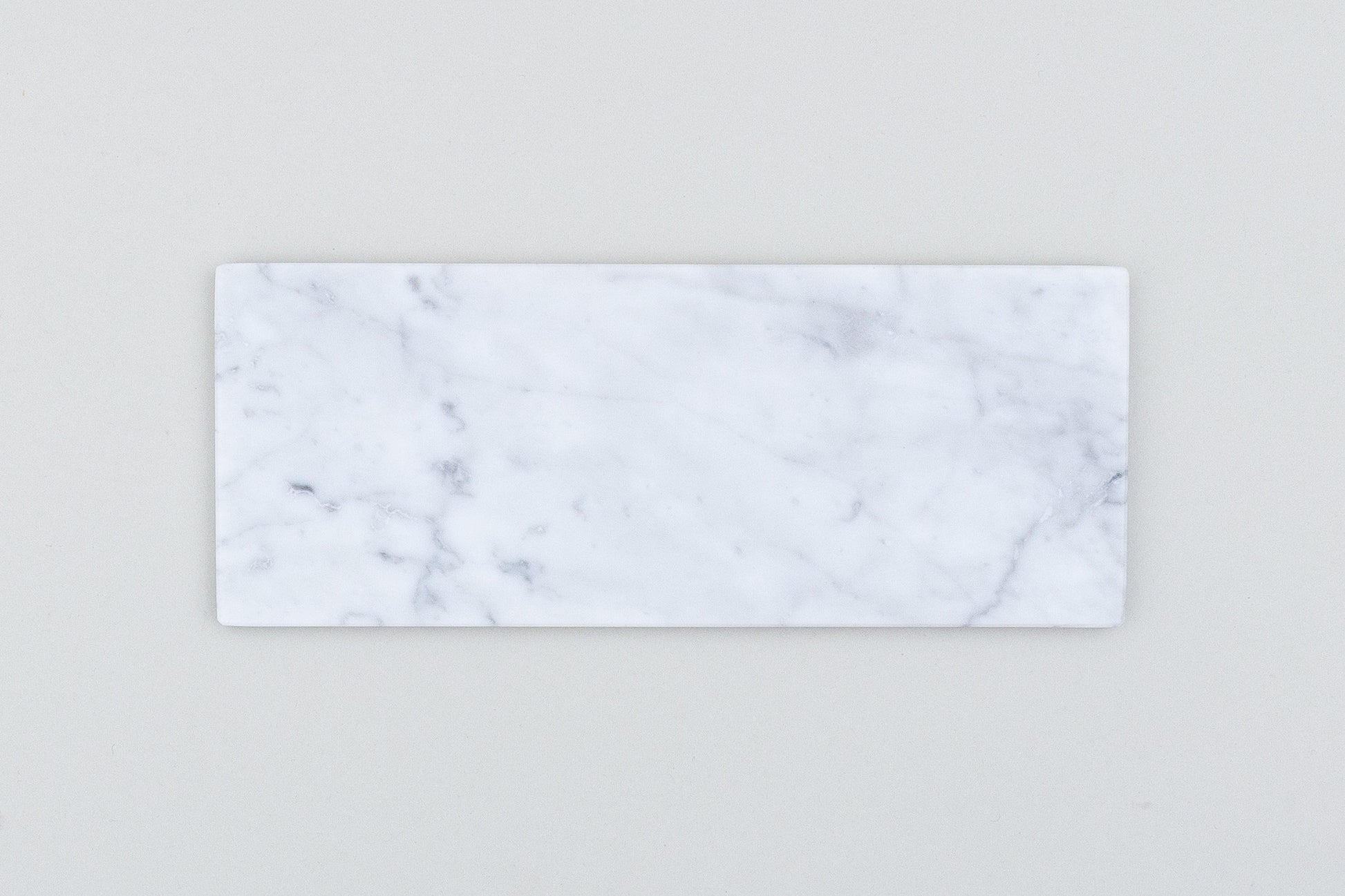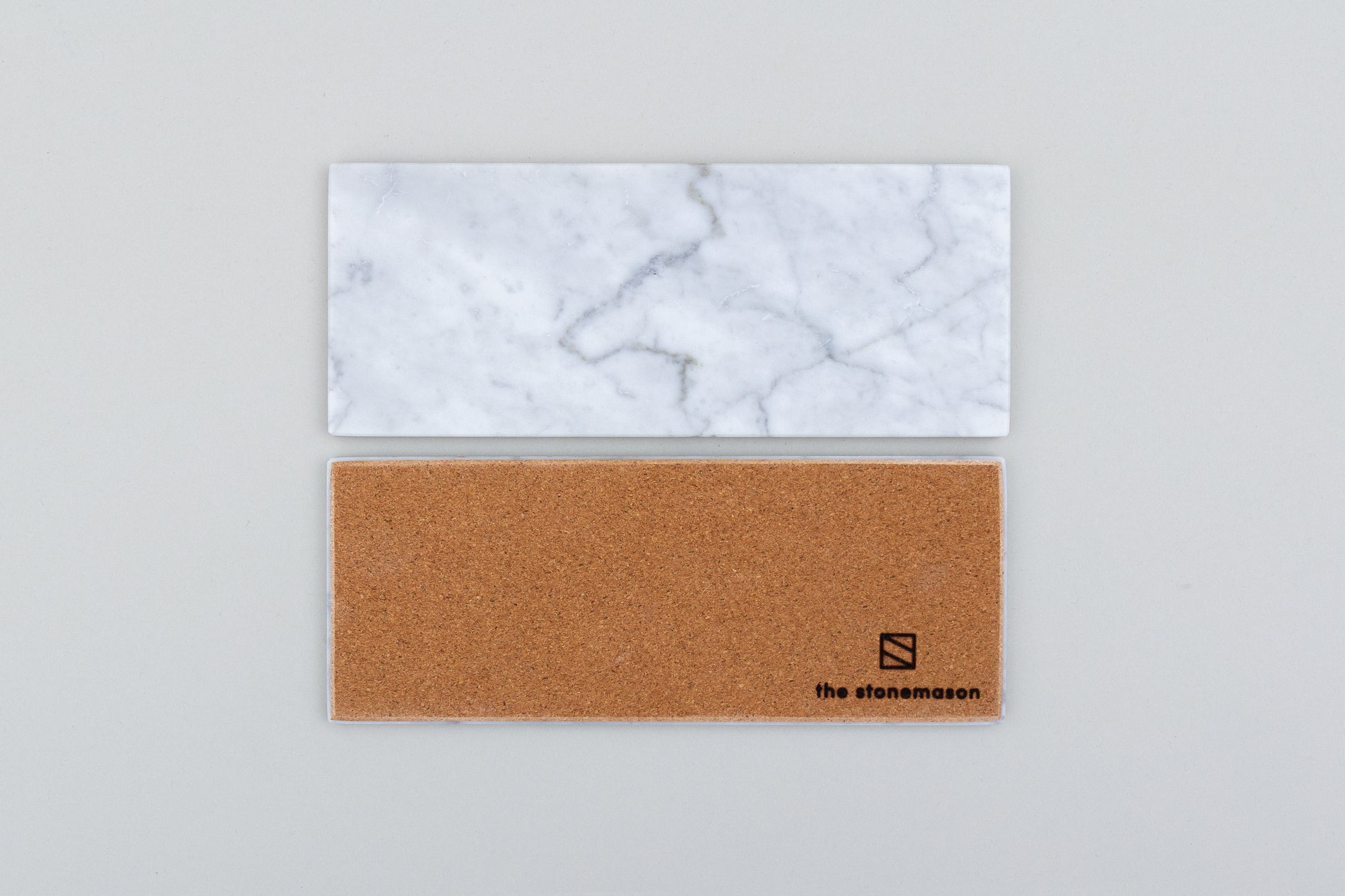 Salo - mit Kork unterlegtes schlankes Servierbrettchen aus weißem Marmor